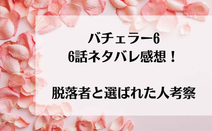 それでは早速、バチェラー6の6話での脱落者や考察を見ていきましょう!